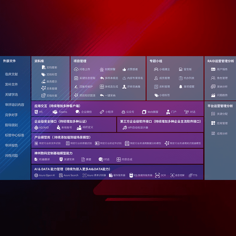 医疗器械产品上市前,,,,要熟悉严格与繁复评审标准,,,,整理分析监管机构指导文件中的海量信息。。。企业急需一个智能化解决方案,,,提升知识管理效率,,,提高评审通过率,,,,以提升其市场竞争力。。